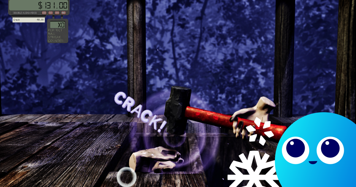 In a nice send-up of Borderlandsy RPGs with their geysers of damage numerals, words such as “perfect” and “OK” flop out on impact and settle squidgily on the boards like condemned sausages, to be absently brushed around as you thwack in nails. There are also bugs you can splat, and special nails with clover stems that (I think) bestow bonus earnings. Much of the time, of course, you’ll clobber your own hand, which deducts an “Ouch” from the invoice emerging from a printing calculator in top left.